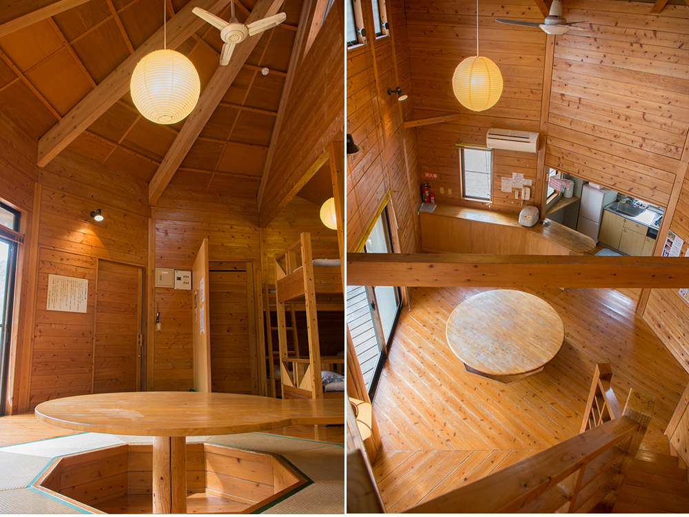 15 cabins are nestled in a peaceful pine forest that stretches to the white sands of Shimo-Aso Beach.
