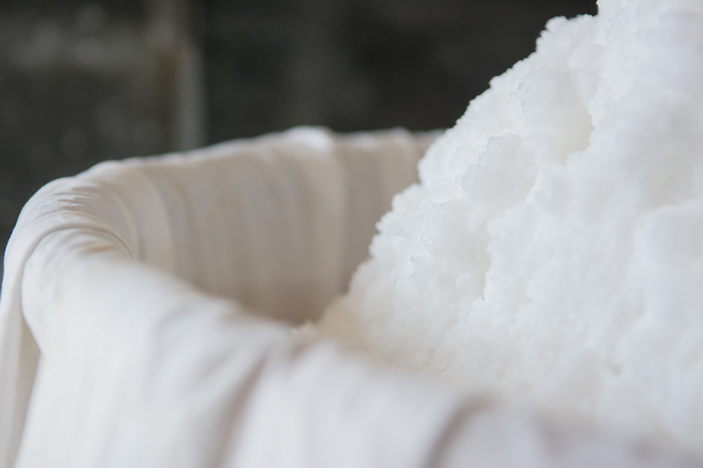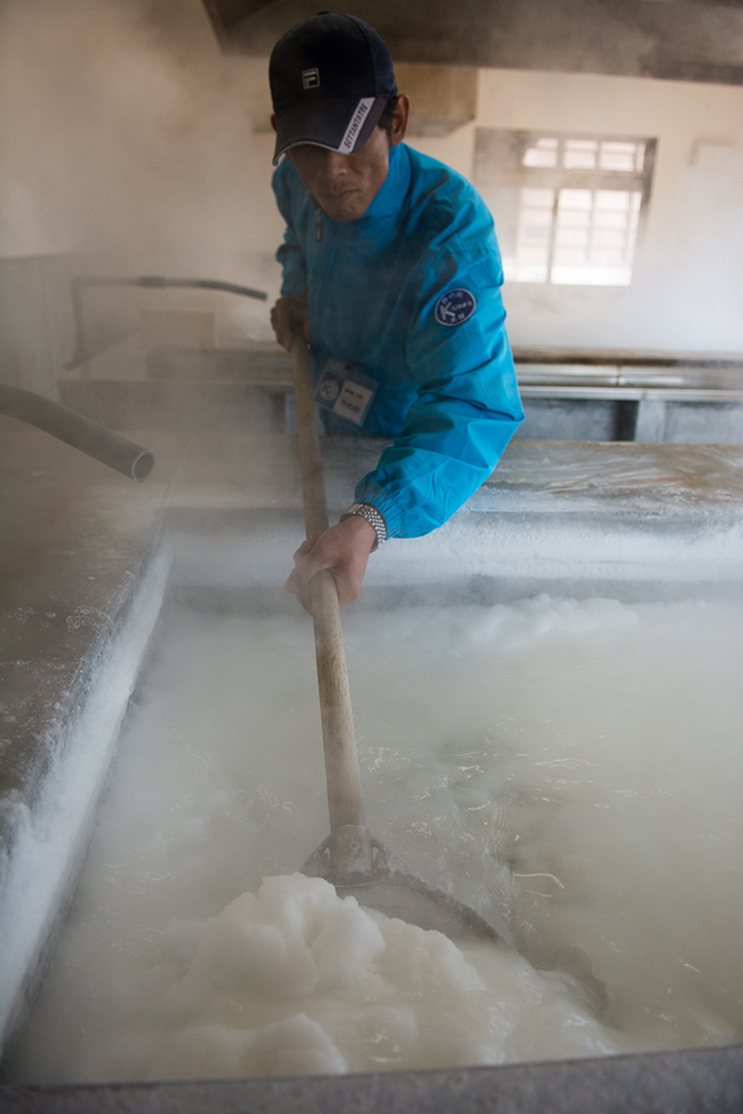9. After sifting the salt to remove calcium, coarse grains and impurities, it is also meticulously inspected by hand to clear away even the smallest impurities. Finally, once the grains are perfectly uniform in size, the salt is carefully packed in each bag.